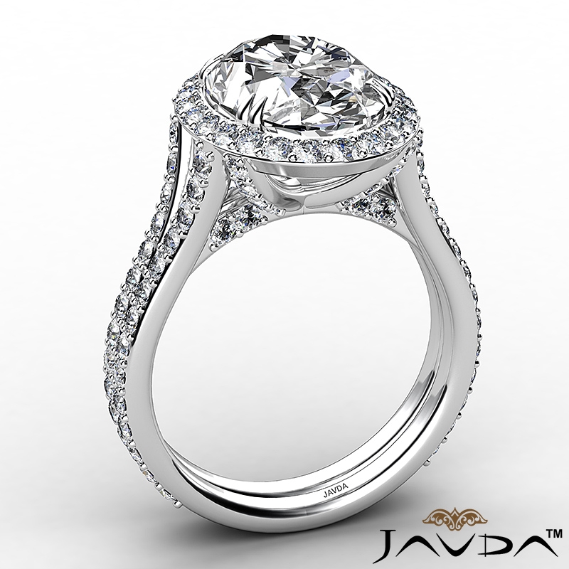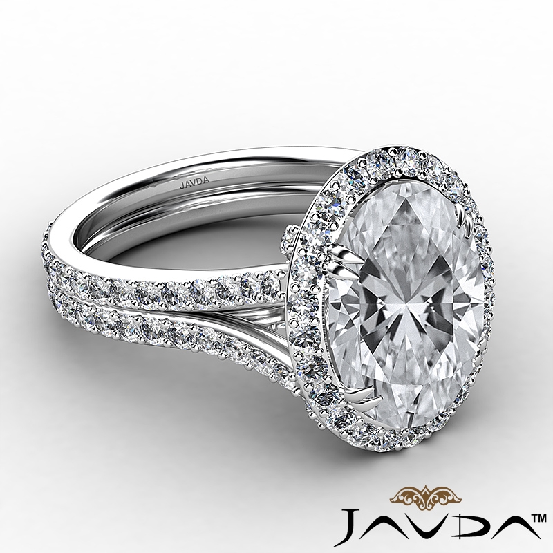 Halo Micro Pave Bridge Accent style Engagement Ring, center is Oval shape Diamond Report by IGI, D Color & VS1 clarity, Made in 14k White Gold (4.05 ct. tw.)