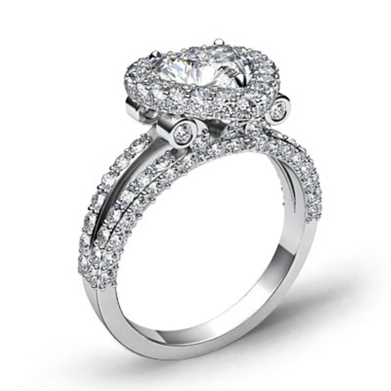 Split-Shank Pave Circa Halo style Engagement Ring, center is Heart shape Diamond Report by IGI, D Color & VS1 clarity, Made in 14k White Gold (2.83 ct. tw.)
