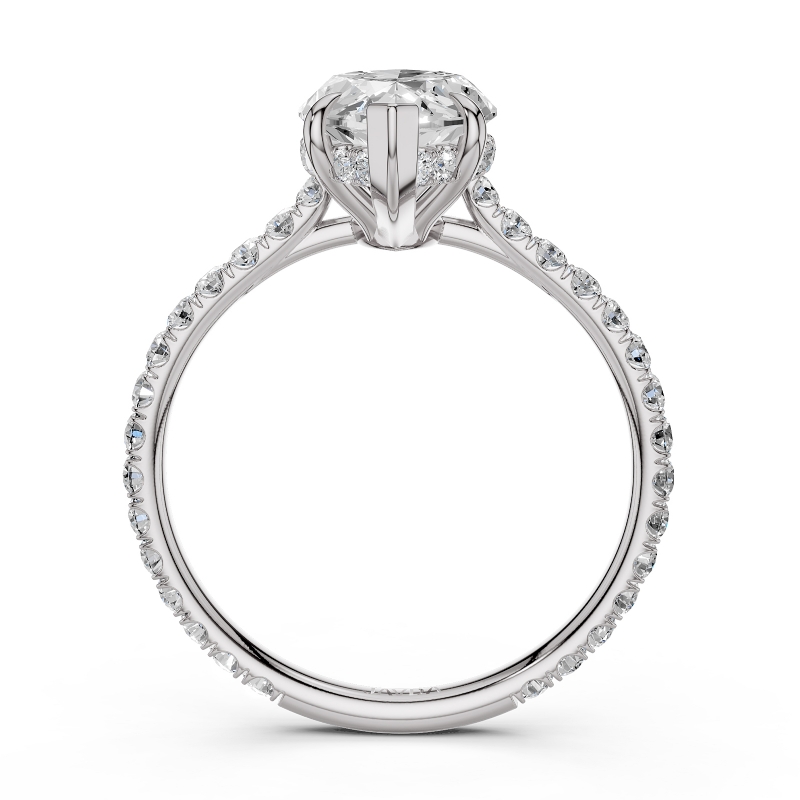 Hidden Halo U Pave Round Semi Mount Diamond Engagement Ring 14k White Gold 0.47Ct.