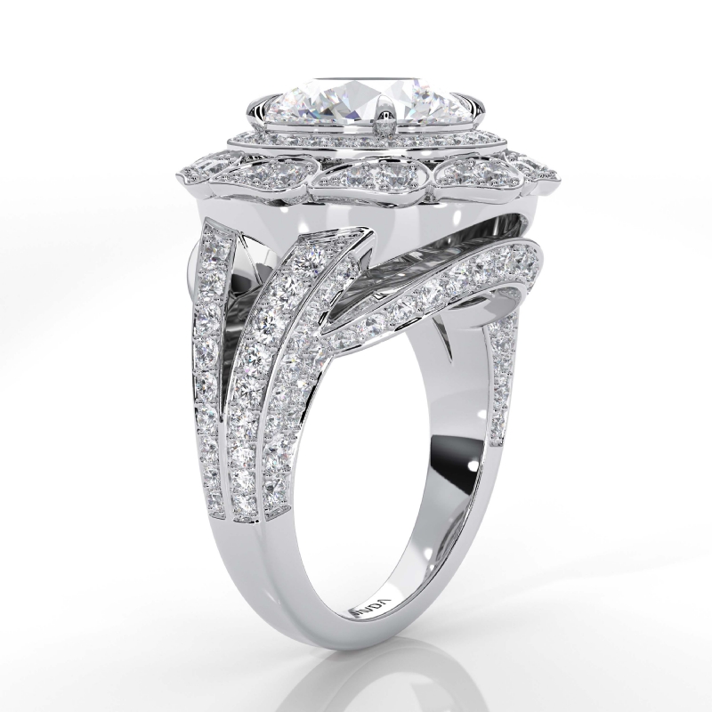 style Engagement Ring, center is Round shape Diamond Report by IGI, F Color & VS1 clarity, Made in 14k White Gold (3.08 ct. tw.)