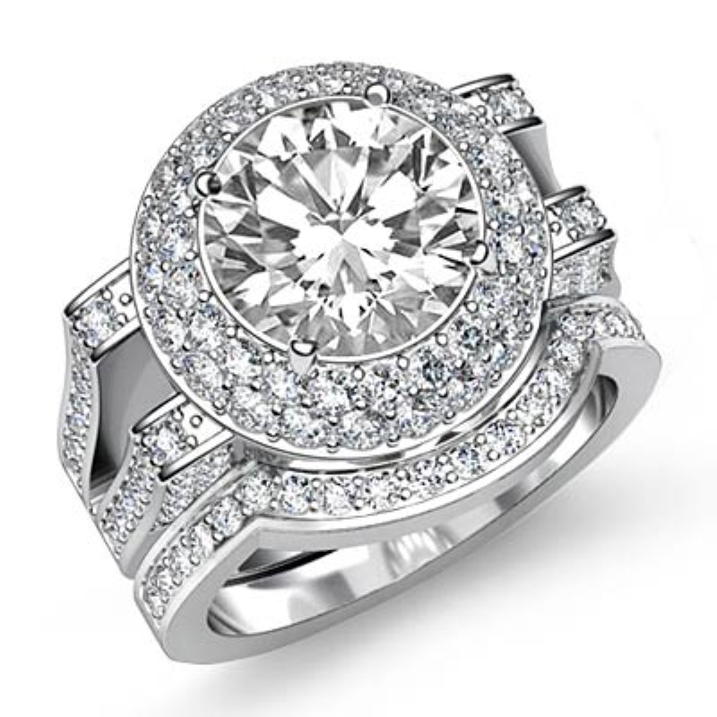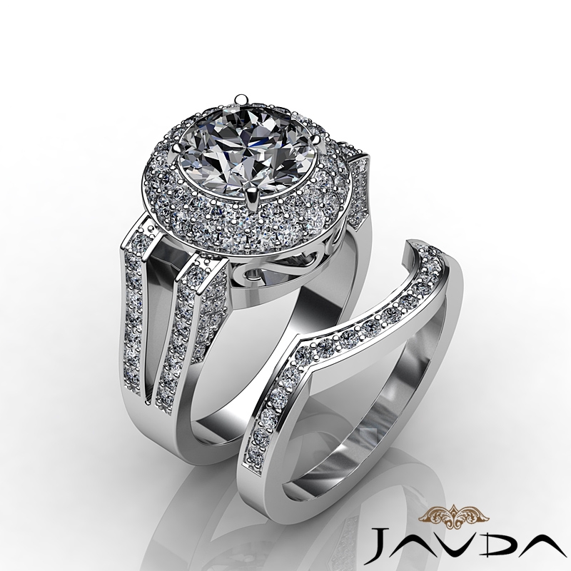 Double Halo Pave Bridal Set style Engagement Ring, center is Round shape Diamond Report by IGI, F Color & VVS2 clarity, Made in 14k White Gold (2.6 ct. tw.)