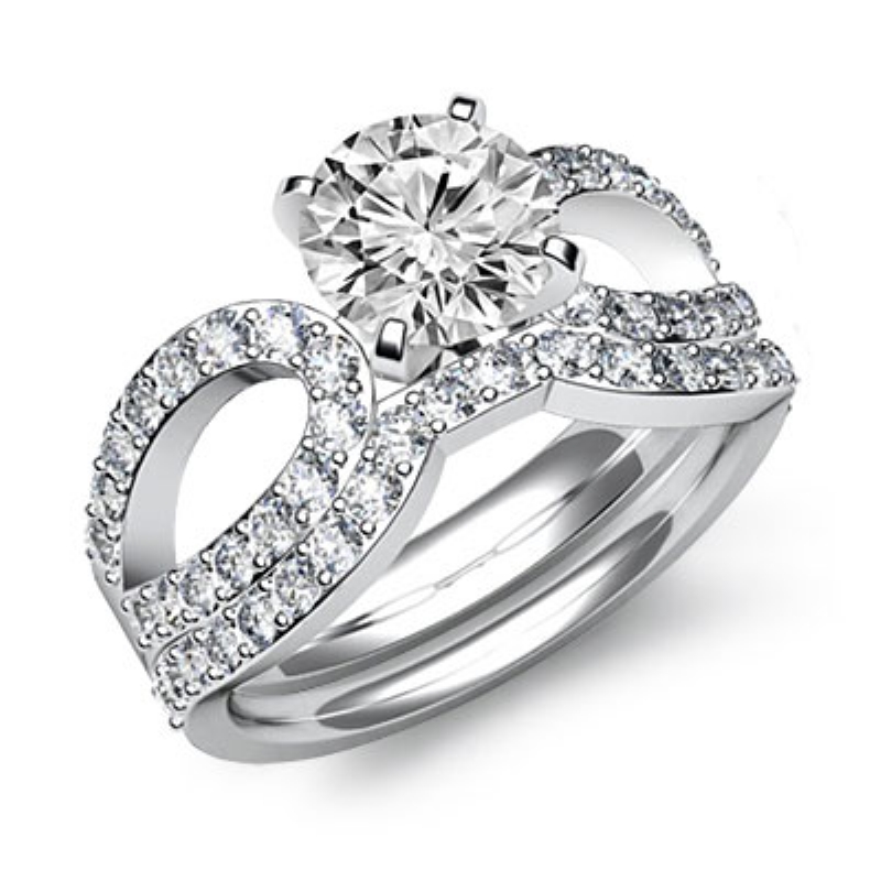 Split Curve Shank Bridal Set style Engagement Ring, center is Round shape Diamond Report by IGI, F Color & VVS2 clarity, Made in 14k White Gold (2.05 ct. tw.)