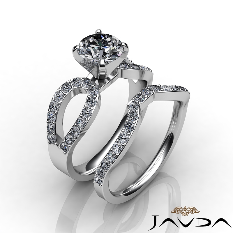 0.9Ct Diamond Engagement Ring Round Bridal Set 14k White Gold Split Curve Shank.