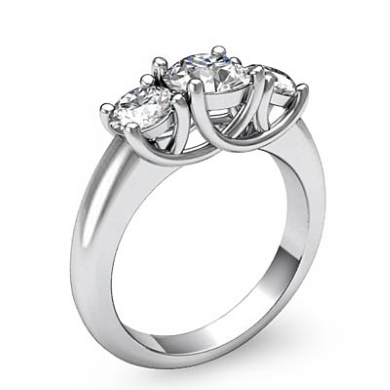 Round Semi Mount Diamond 3 Stone Engagement Ring 14k White Gold 0.8Ct.