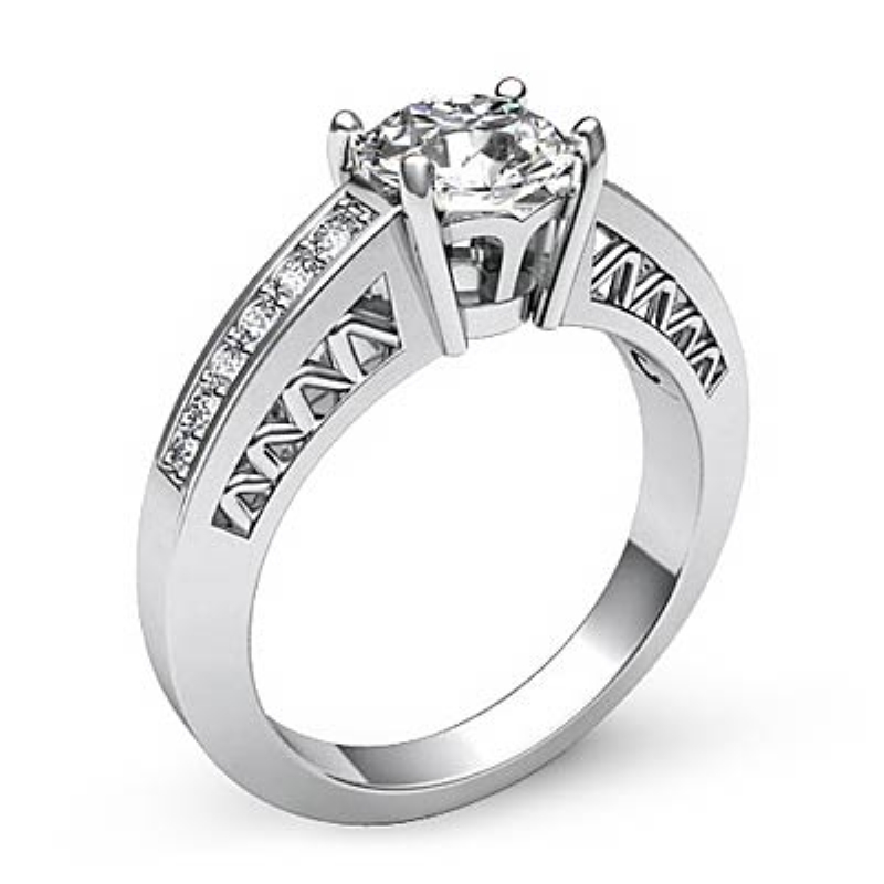 0.25Ct Round Diamond Engagement Ring Side Stone Setting 14k White Gold.