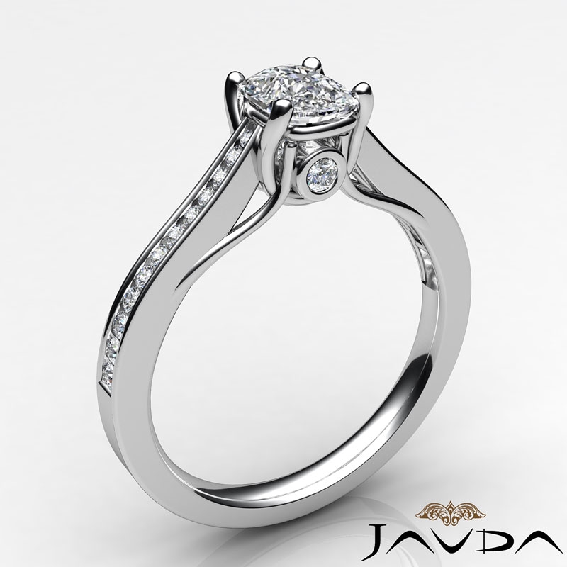 Trellis Bezel Accent Channel style Engagement Ring, center is Cushion shape Diamond Report by GIA, E Color & VS1 clarity, Made in 14k White Gold (0.7 ct. tw.)