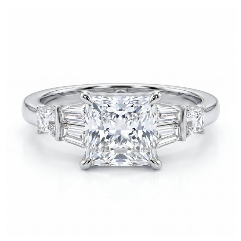 style Engagement Ring, center is Princess shape Diamond Report by IGI, D Color & VS1 clarity, Made in 14k White Gold (1.47 ct. tw.)