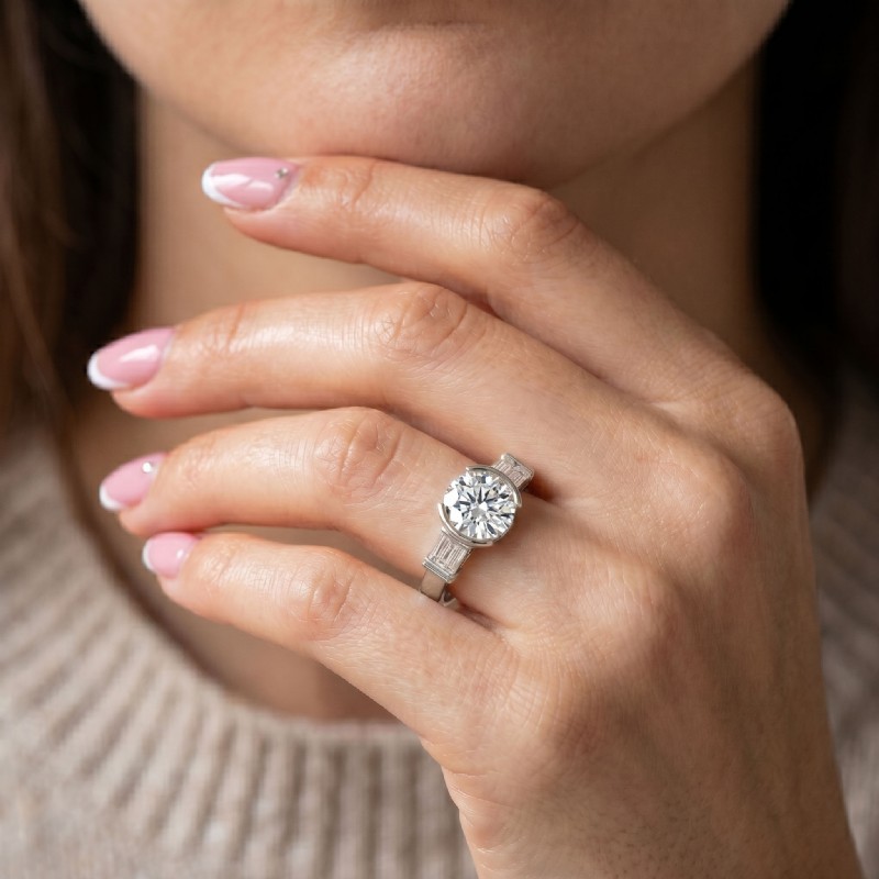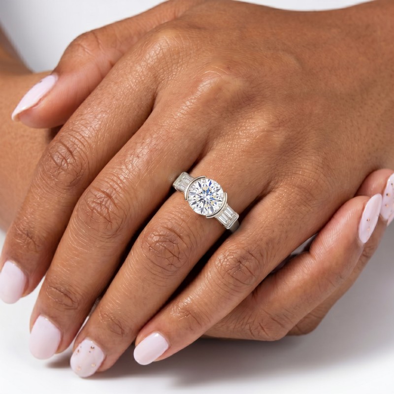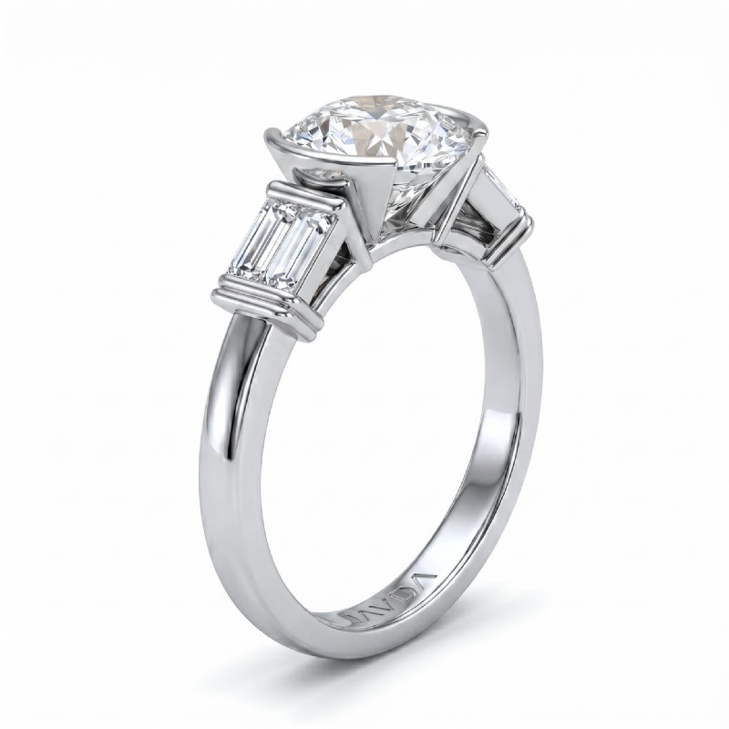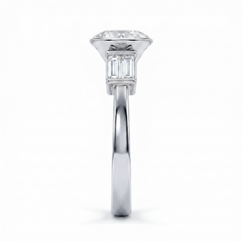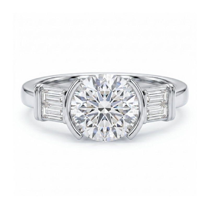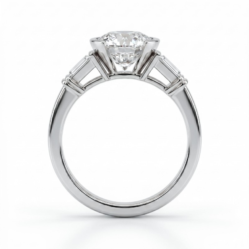 Baguette Round Diamond 3Stone Engagement Ring Setting 14k White Gold 0.4Ct.