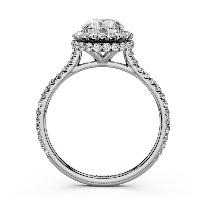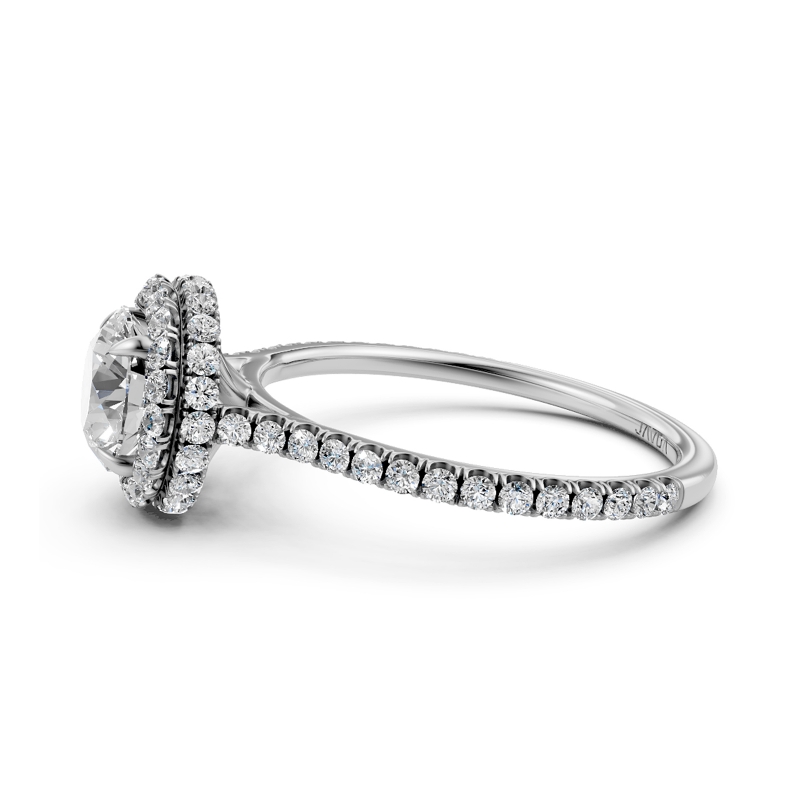 Double Halo Semi Mount Lab Grown Diamond Engagement Ring 14k White Gold 0.53Ct - javda.com