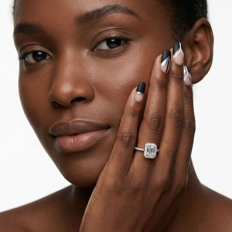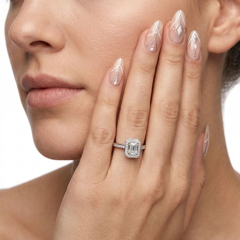 Emerald shape is diamond certified by GIA, 100% natural D color & VVS1 clarity {0.50 ctw.}.