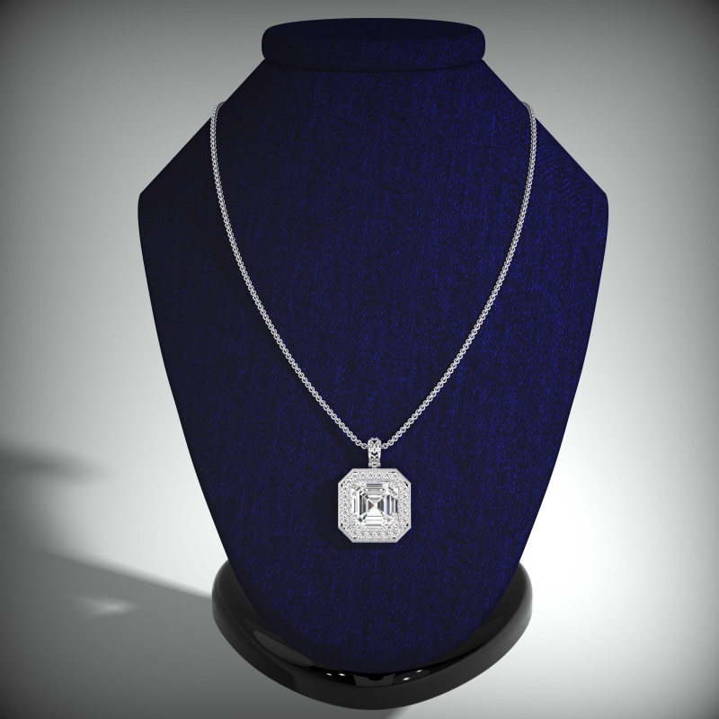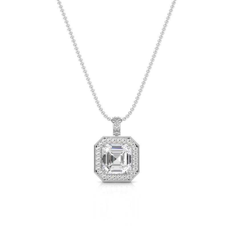 style Engagement Pendant, center is Asscher shape Diamond Report by GIA, F Color & VS2 clarity, Made in 14k White Gold (1.87 ct. tw.)