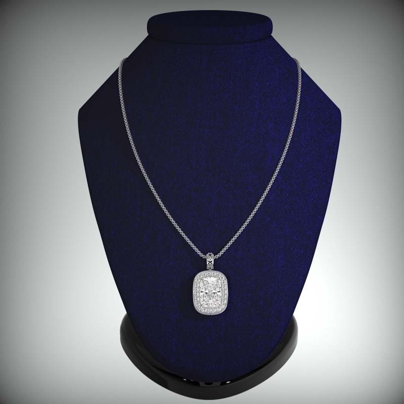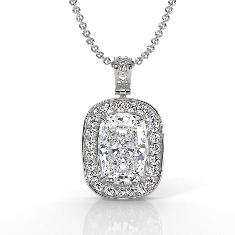 style Engagement Pendant, center is Cushion shape Diamond Report by GIA, J Color & VS1 clarity, Made in 14k White Gold (1.12 ct. tw.)