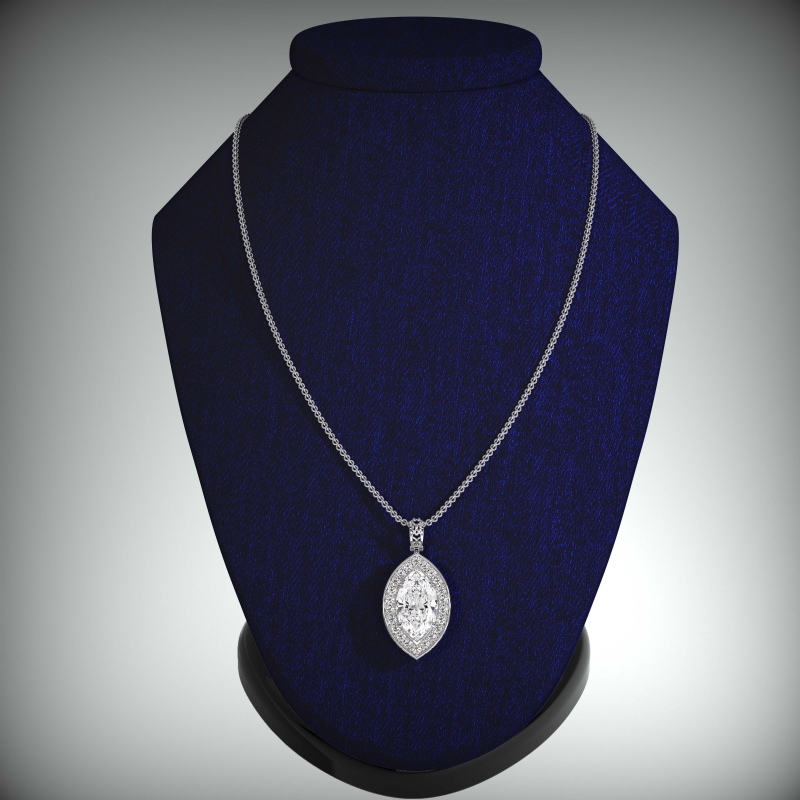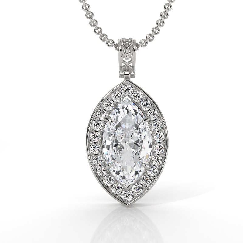 style Engagement Pendant, center is Marquise shape Diamond Report by GIA, J Color & VS2 clarity, Made in 14k White Gold (1.23 ct. tw.)