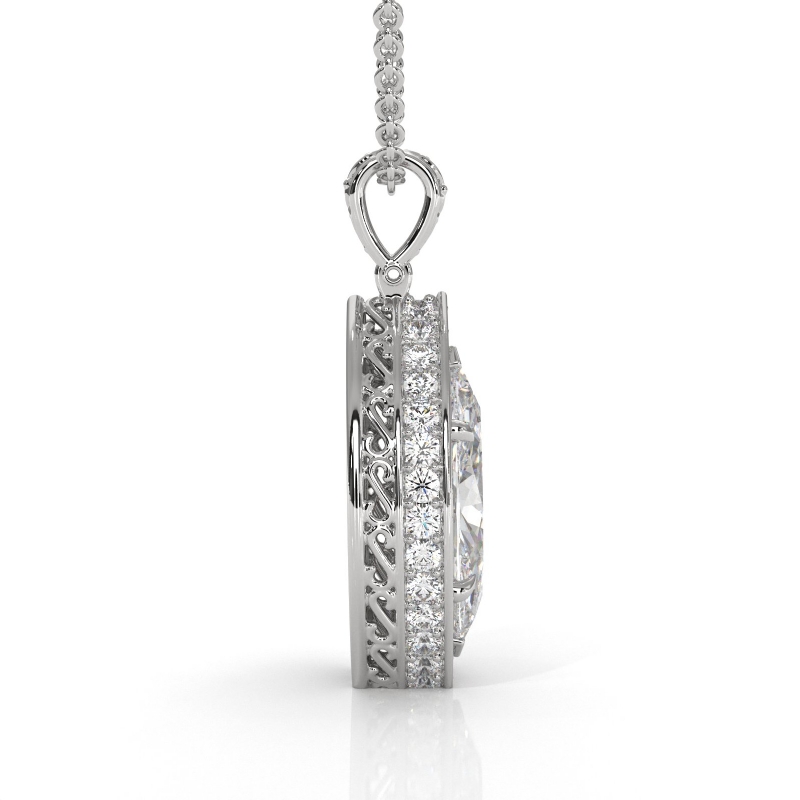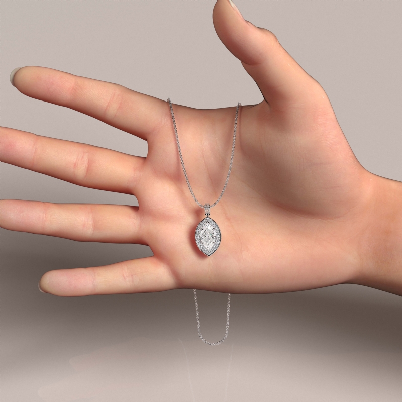 Pave Set Halo Round Diamond Marquise Solitaire Pendant in 14k White Gold 0.63Ct.