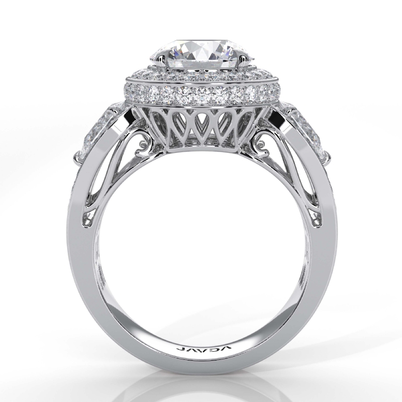 3 Stone Round Diamond Vintage style Engagement Halo Ring Set 14k White Gold Semi-Mount 1.85Ct - javda.com