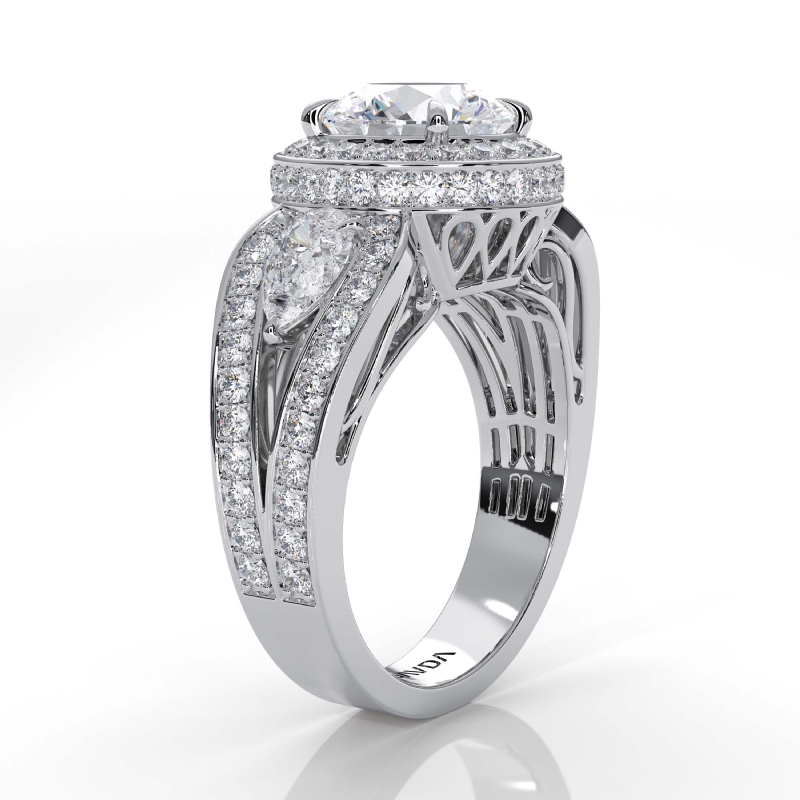style Engagement Ring, center is Round shape Diamond Report by IGI, D Color & VS1 clarity, Made in 14k White Gold (2.89 ct. tw.)