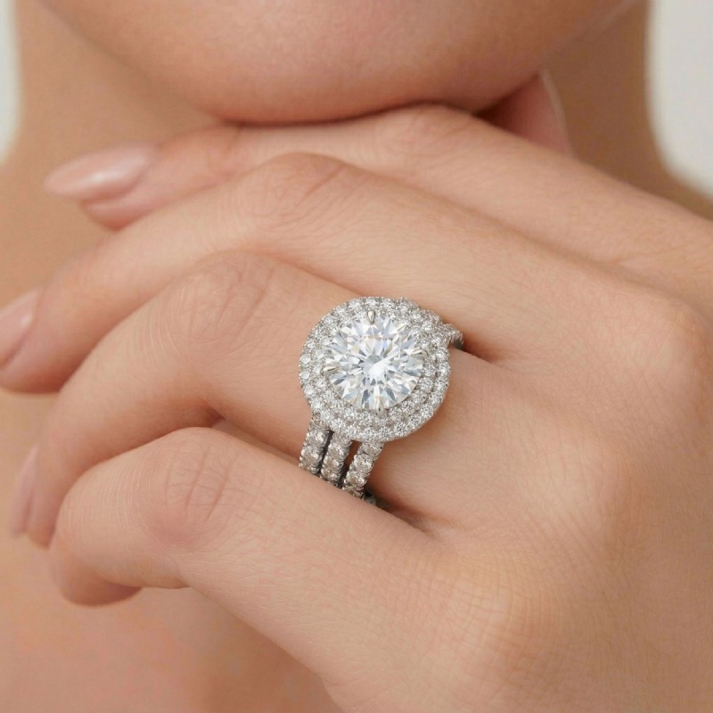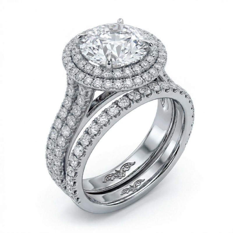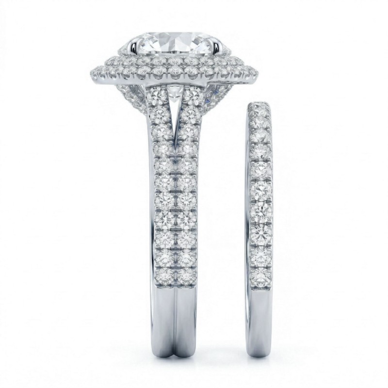 2.2Ct Diamond Halo Pave Setting Engagement Ring Round Bridal Set 14k White Gold.