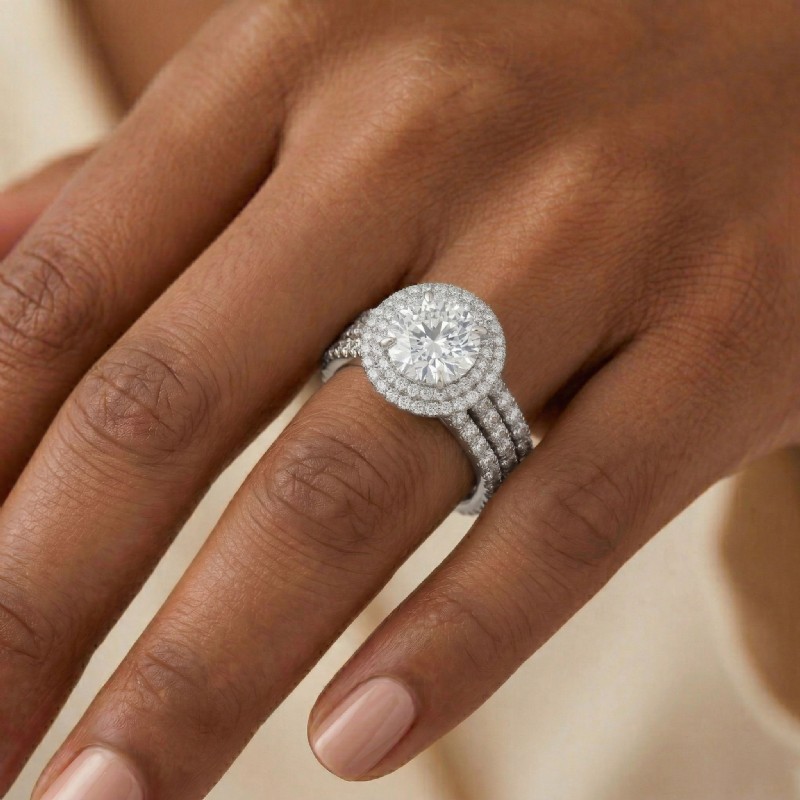 - Side stone carat weights are approximate