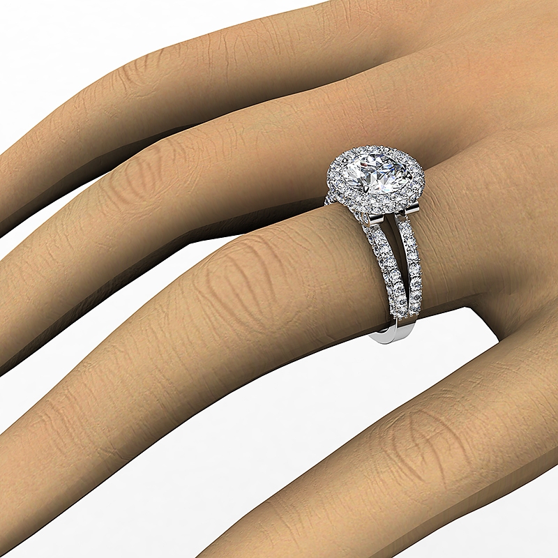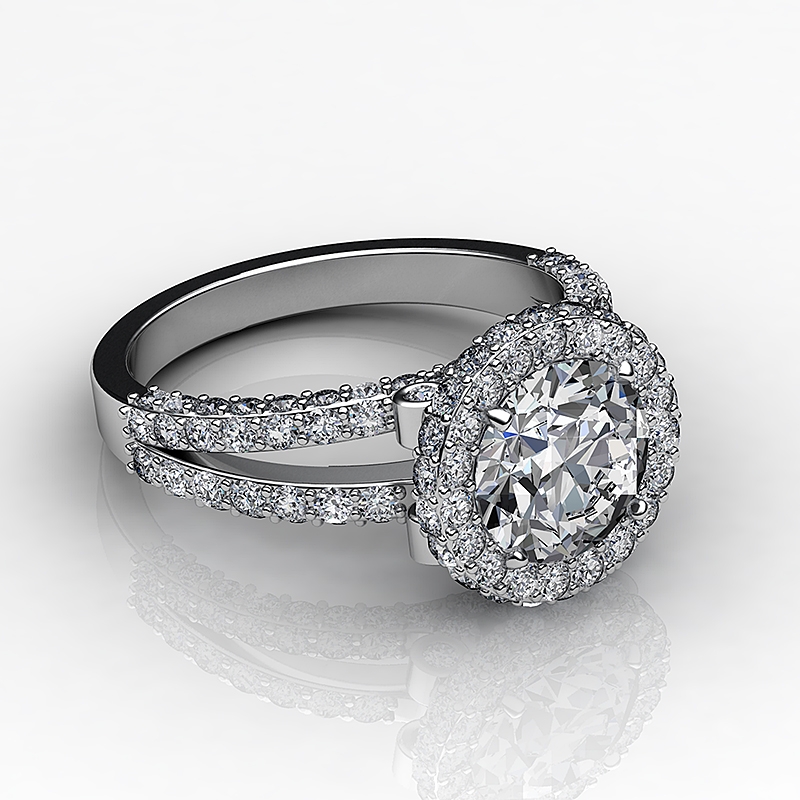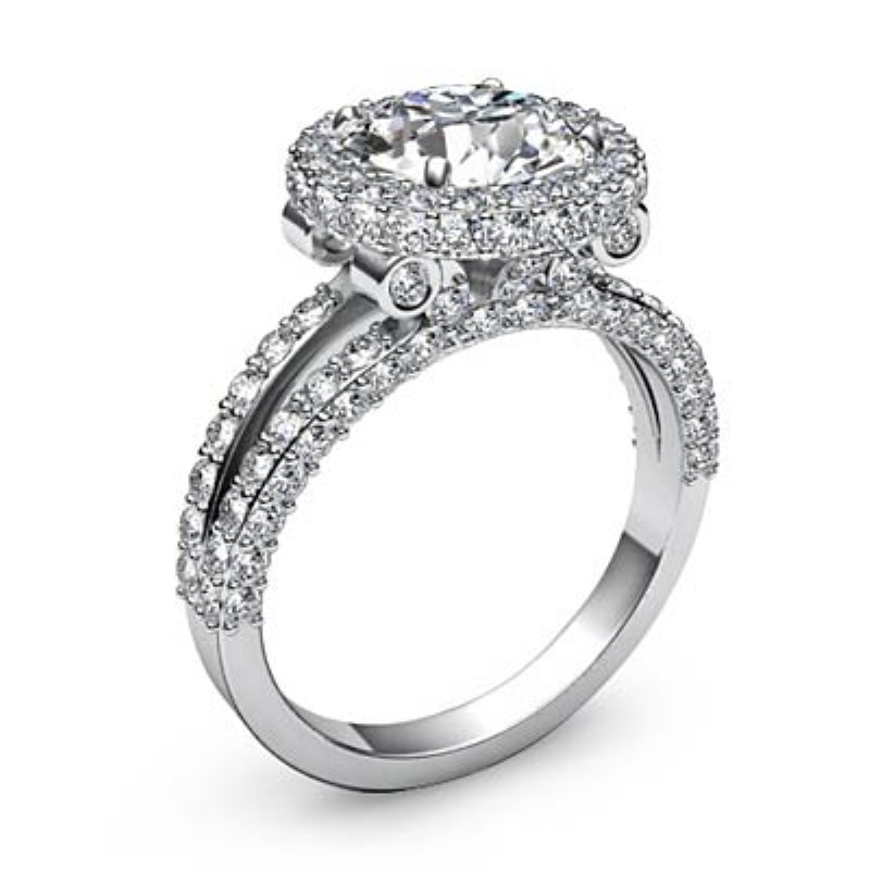 Diamond Engagement Ring Round Semi Mount 14k White Gold Halo 1.4Ct.