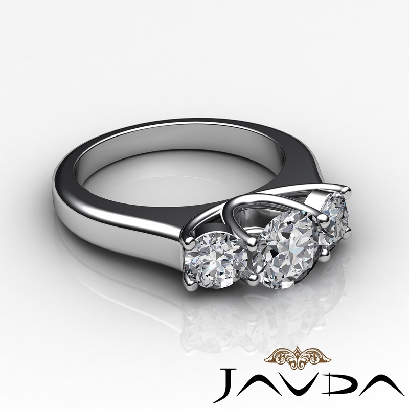 Round Diamond 3 Stone Anniversary Semi Mount Ring 14k White Gold 0.5Ct - javda.com