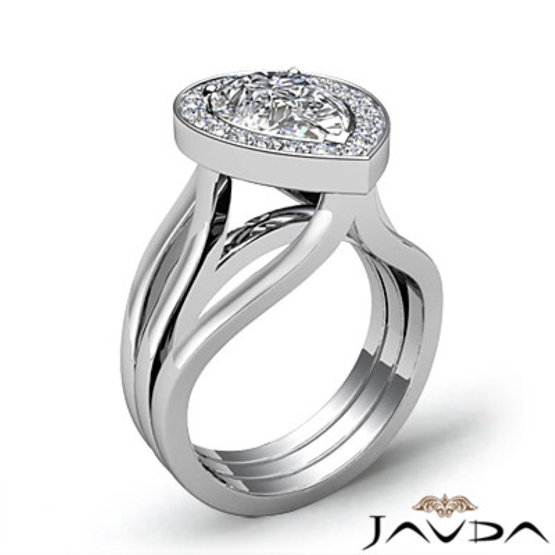 Diamond Engagement Ring Pear Semi Mount 14k White Gold Halo Pave Setting 0.4Ct.