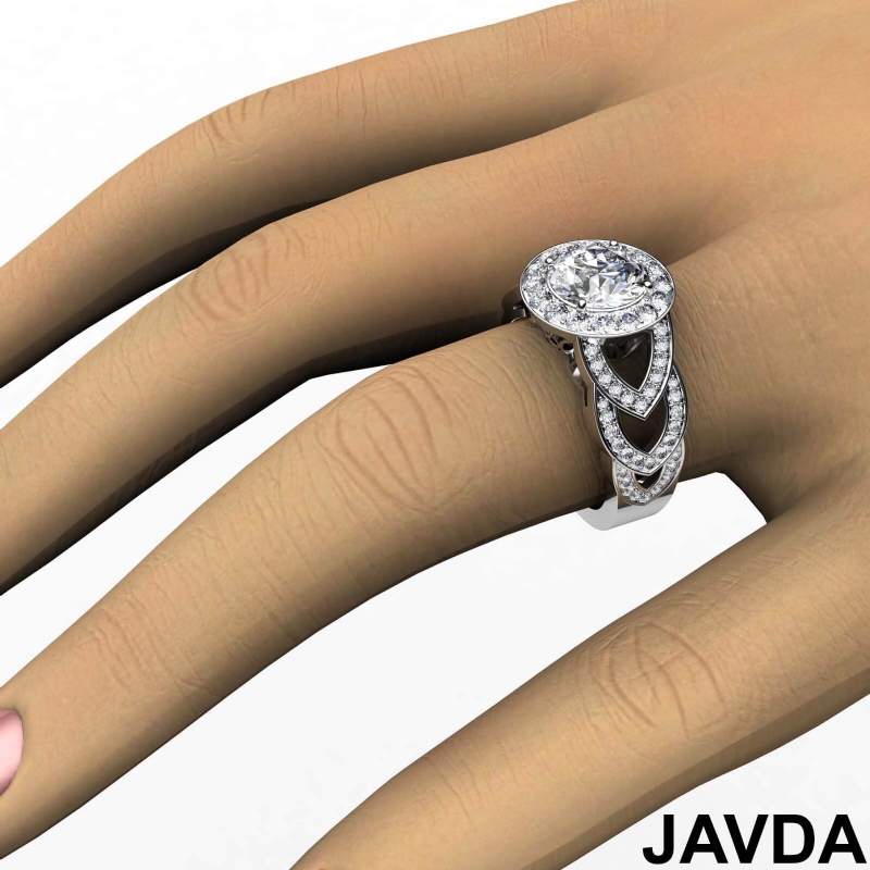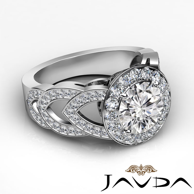 Round Semi Mount Diamond Engagement Ring Halo Pave Set 14k White Gold Band 1.25Ct.