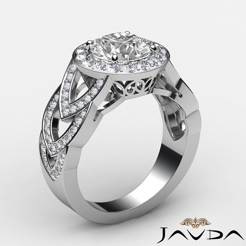 Designer Shank Halo Pave style Engagement Ring, center is Round shape Diamond Report by IGI, H Color & VS1 clarity, Made in 14k White Gold (3.05 ct. tw.)