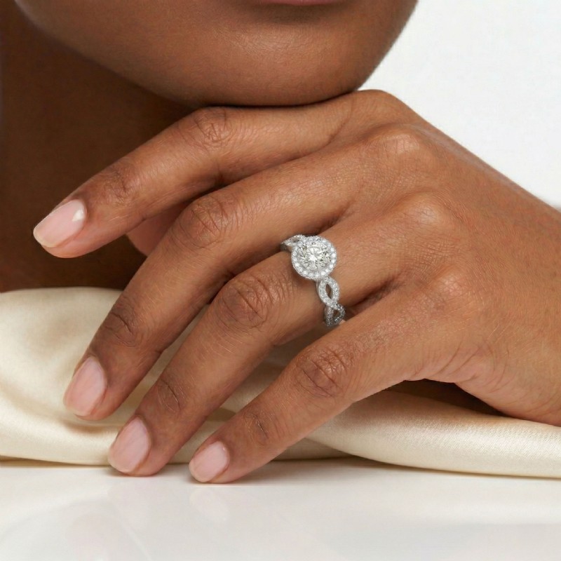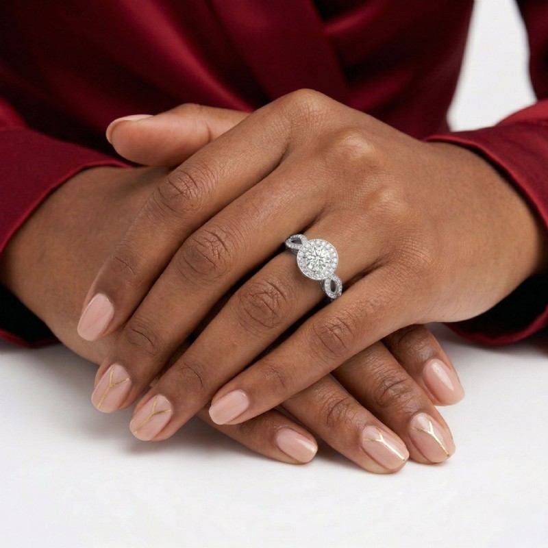 Round Cut Diamond Engagement Ring Pave Setting 14k White Gold Wedding Band 1.3Ct.