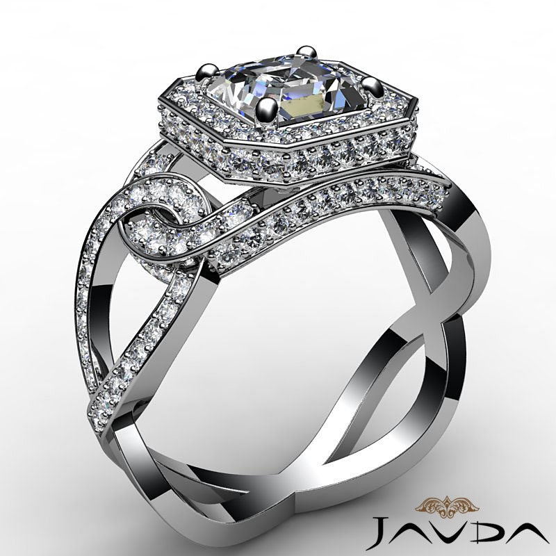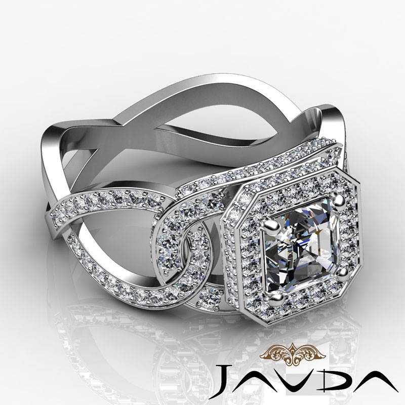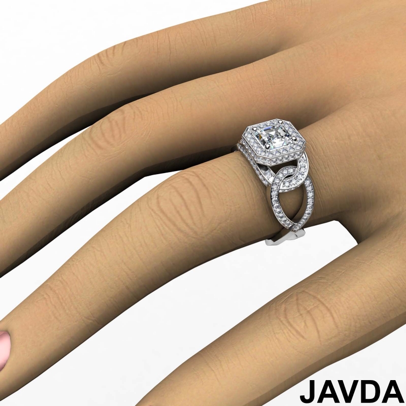 Interlocking Shank Circa Halo style Engagement Ring, center is Asscher shape Diamond Report by IGI, D Color & VS1 clarity, Made in 14k White Gold (2.81 ct. tw.)