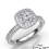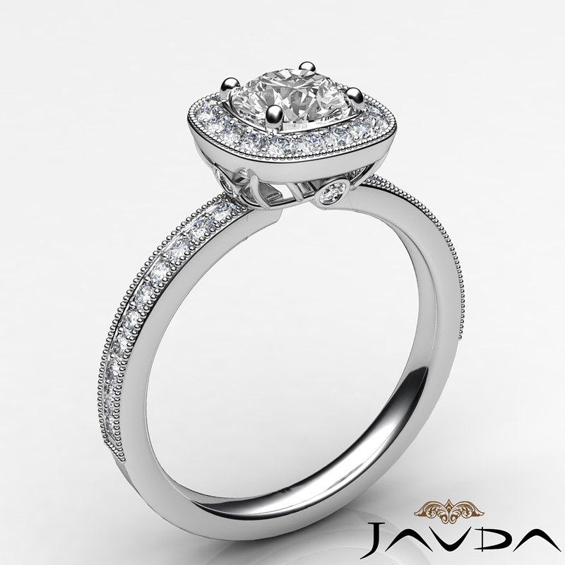Milgrain Edge Halo Micro Pave style Engagement Ring, center is Round shape Diamond Report by GIA, F Color & VS2 clarity, Made in 14k White Gold (1 ct. tw.)
