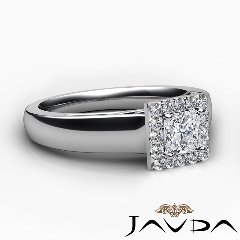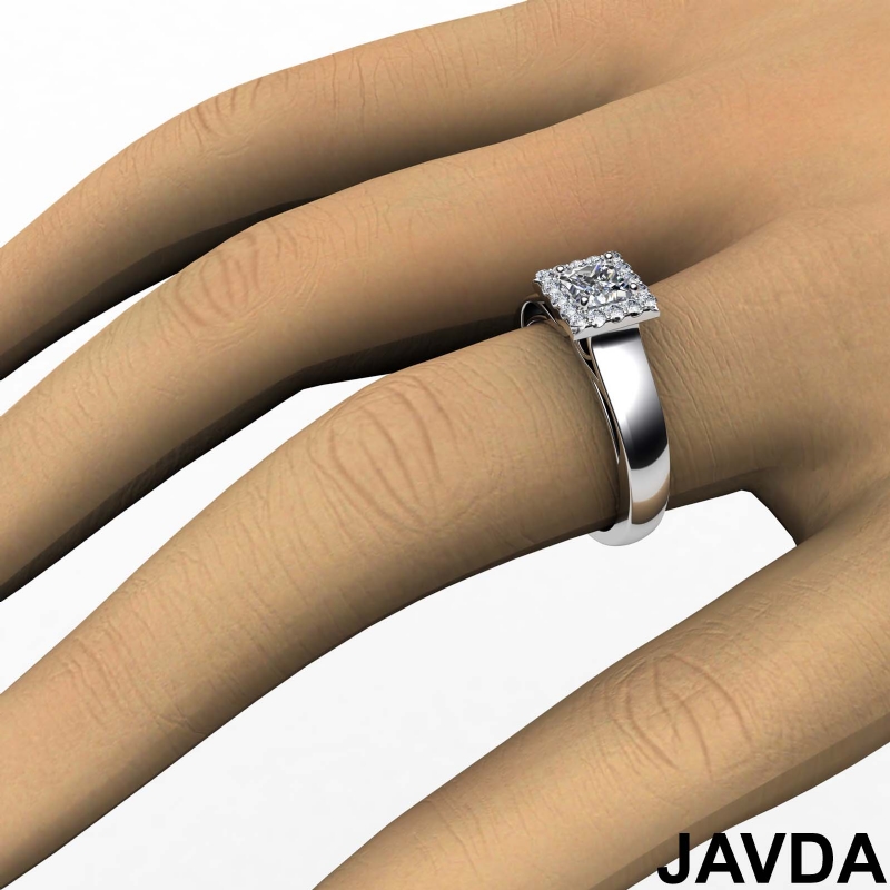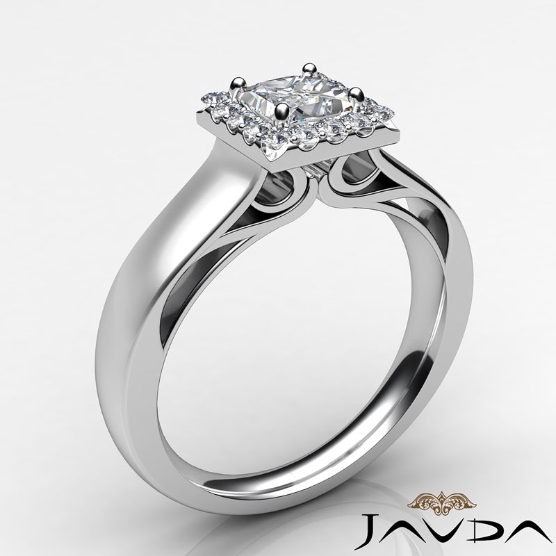 Princess Diamond Engagement Halo Pave Setting Semi Mount Ring 14k White Gold 0.2Ct.