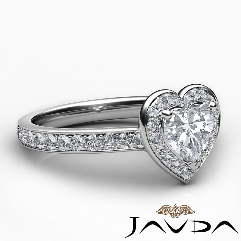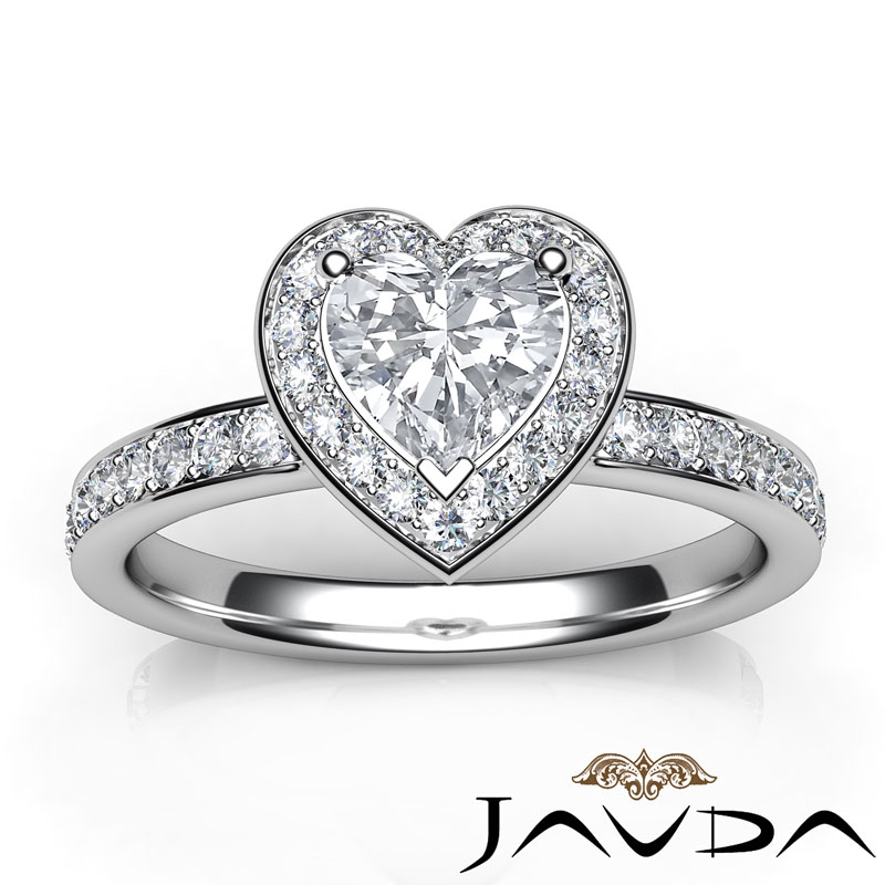 Diamond Engagement Halo Pave Setting Heart Semi Mount Ring 14k White Gold 0.45Ct - javda.com