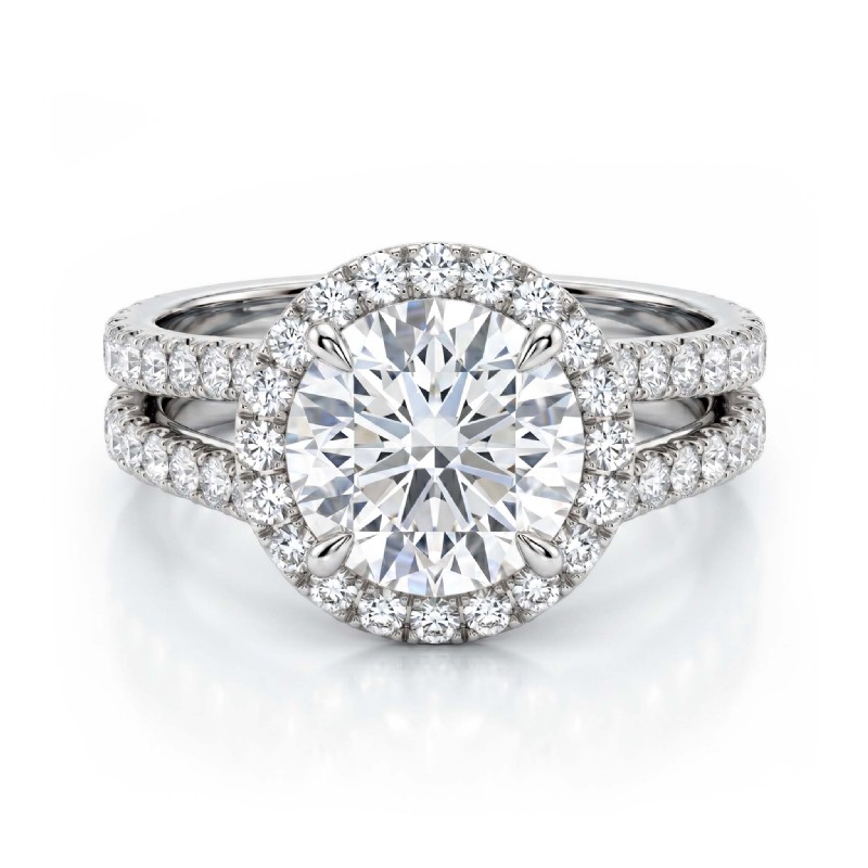style Engagement Ring, center is Round shape Diamond Report by IGI, D Color & VS1 clarity, Made in 14k White Gold (1.79 ct. tw.)