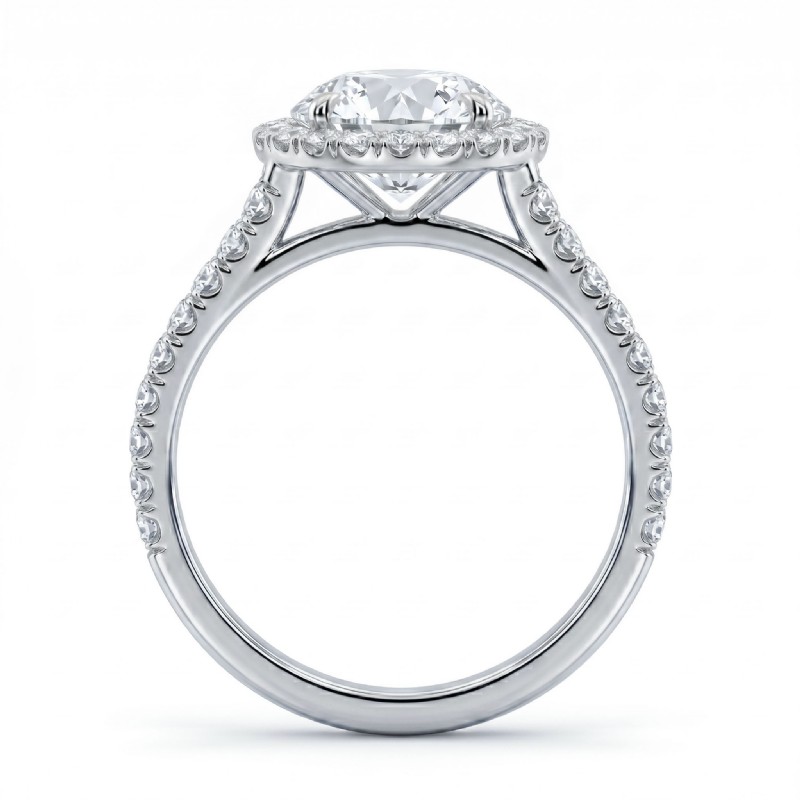 Halo Prong Round Diamond Gorgeous Engagement Semi Mount Ring 14k White Gold 0.75Ct.