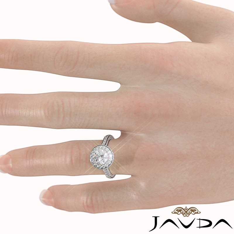 Round Diamond Engagement Ring Pave Semi Mount 14k White Gold Wedding Band 1.9Ct.