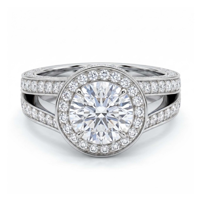 style Engagement Ring, center is Round shape Diamond Report by IGI, D Color & VS1 clarity, Made in 14k White Gold (2.54 ct. tw.)