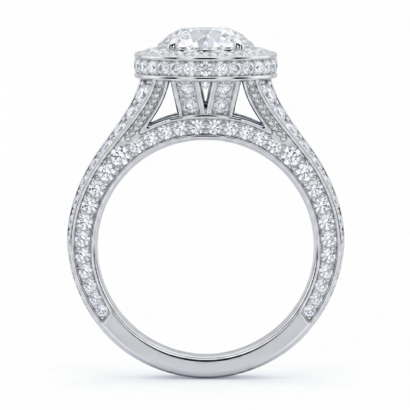 Halo Pave Diamond Engagement Elegant Ring 14k White Gold Round Semi Mount 1.5Ct.