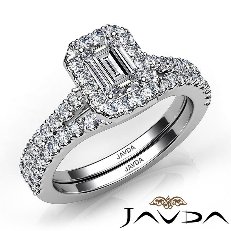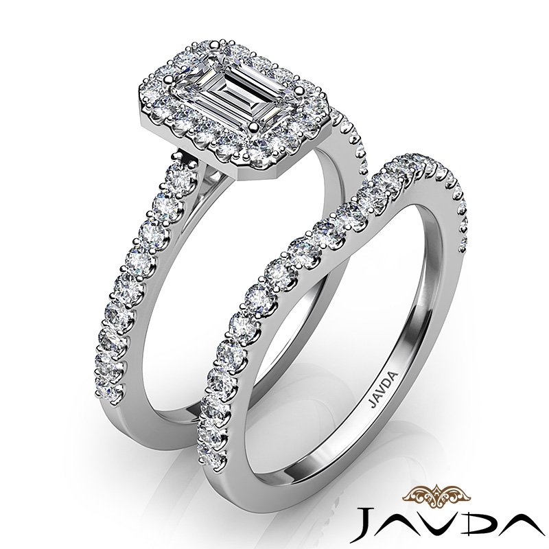 Diamond Emerald Cut Semi Mount Engagement Ring Bridal Set 14k White Gold 1Ct.