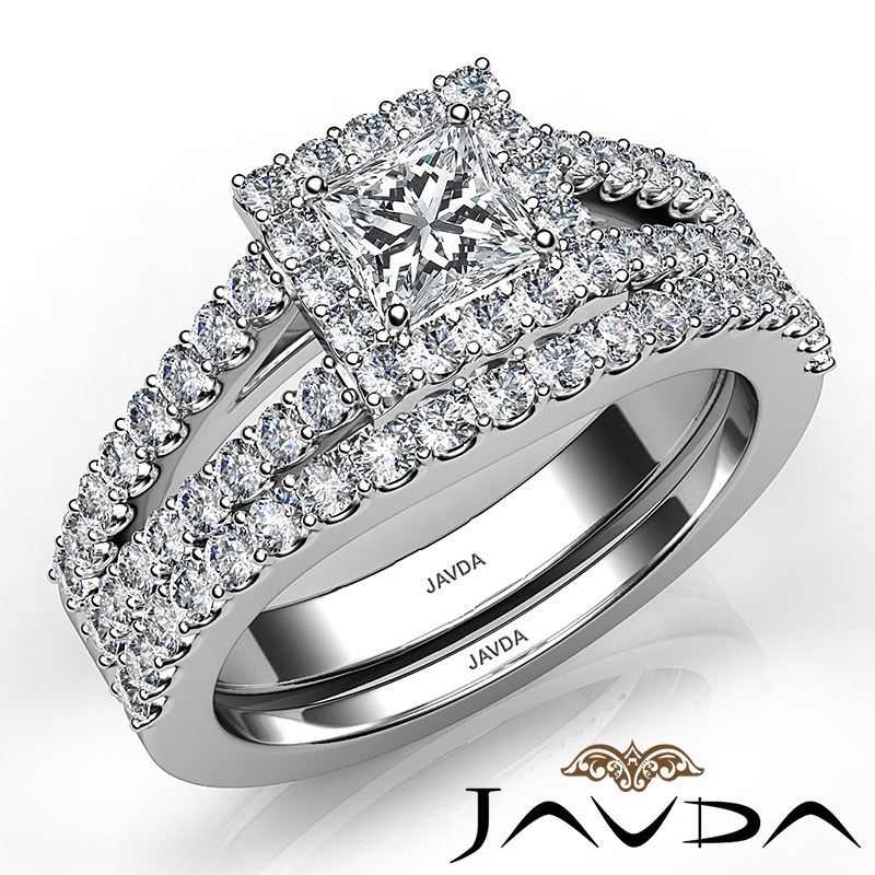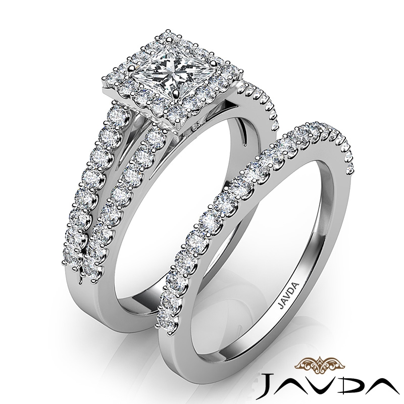 U Prong Diamond Engagement Semi Mount Ring Princess Bridal Set 14k White Gold 1.25Ct.