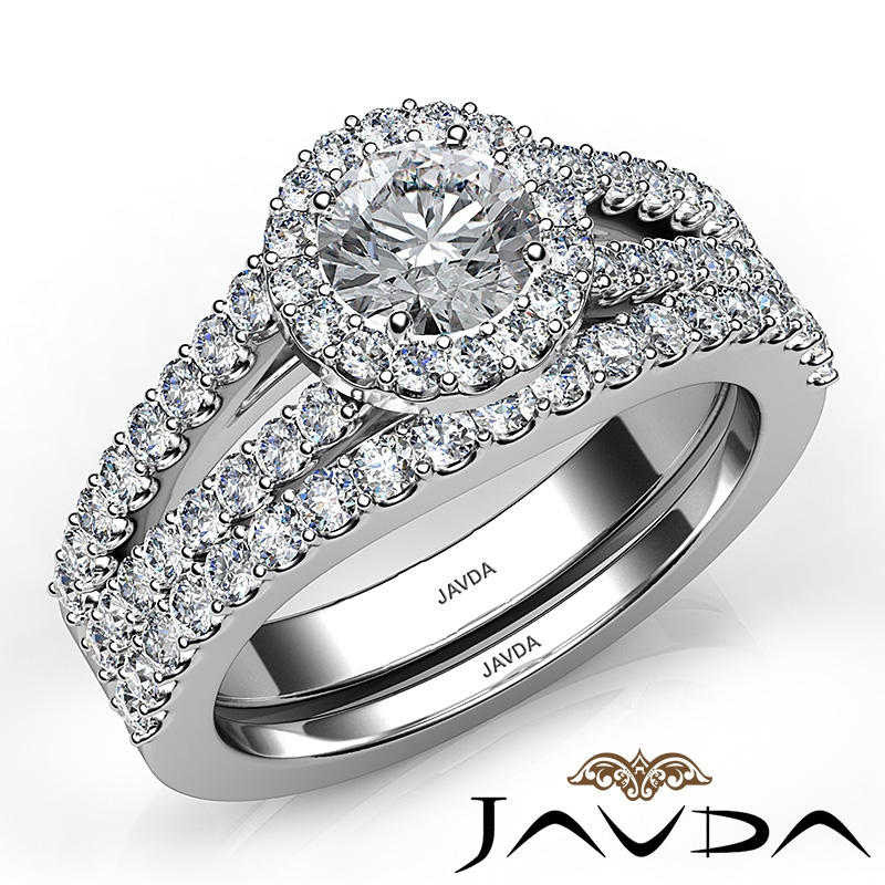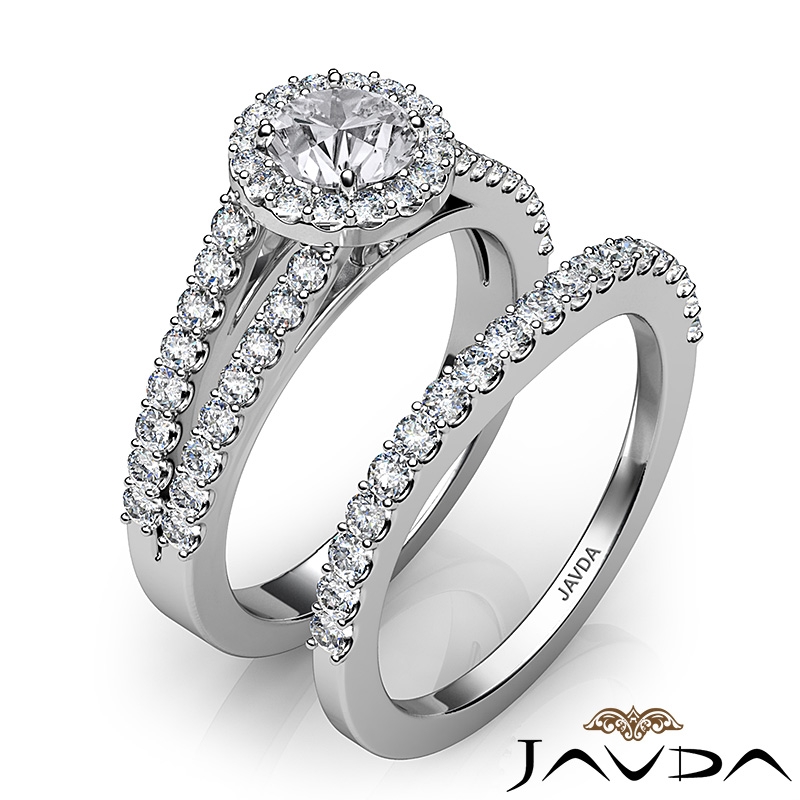 U Prong Diamond Engagement Semi Mount Ring Round Bridal Set 14k White Gold 1.25Ct - javda.com