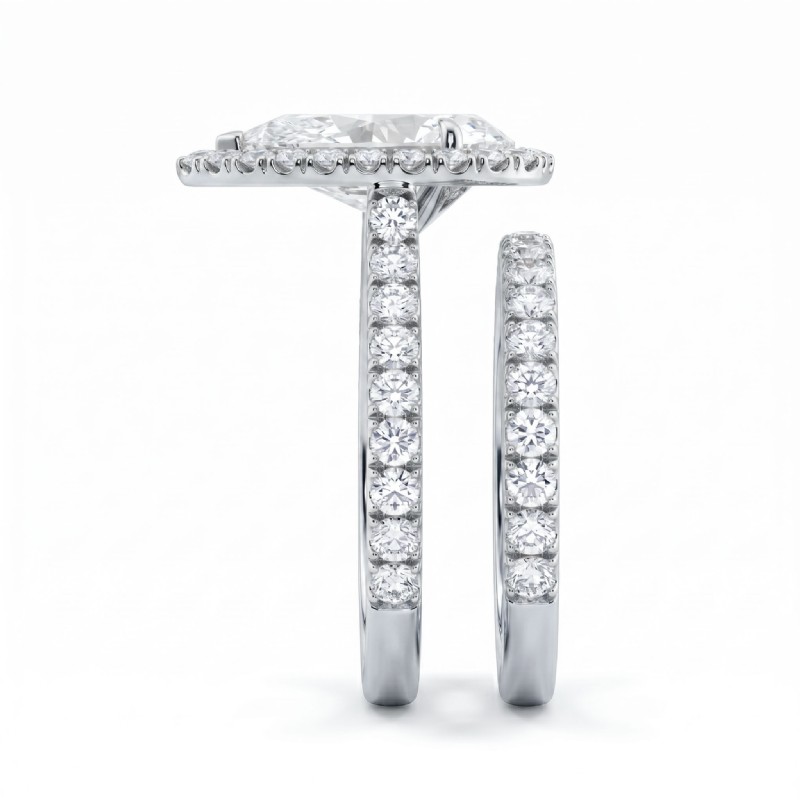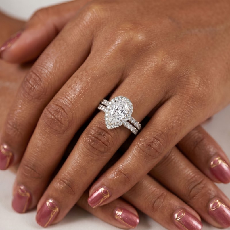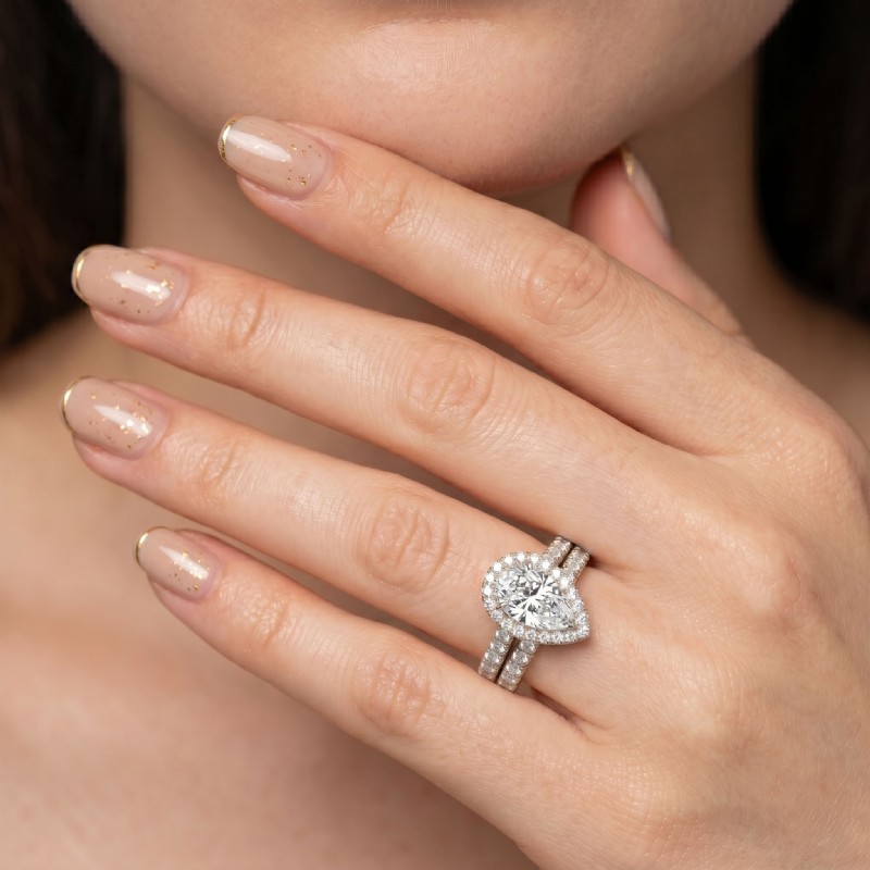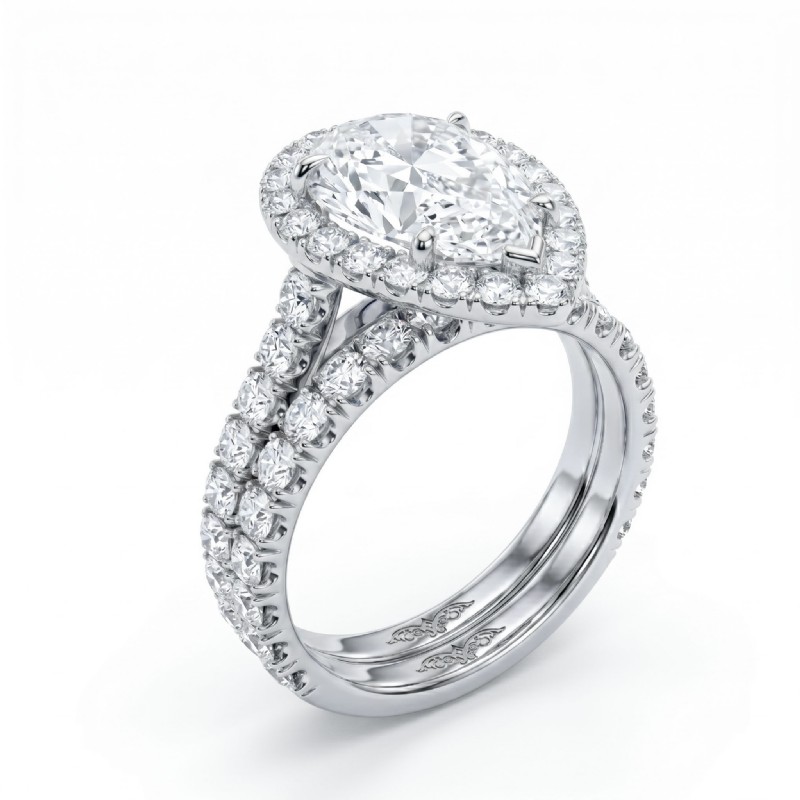 French V Cut Pave Diamond Engagement Ring Pear Bridal Sets 14k White Gold 1.5Ct.