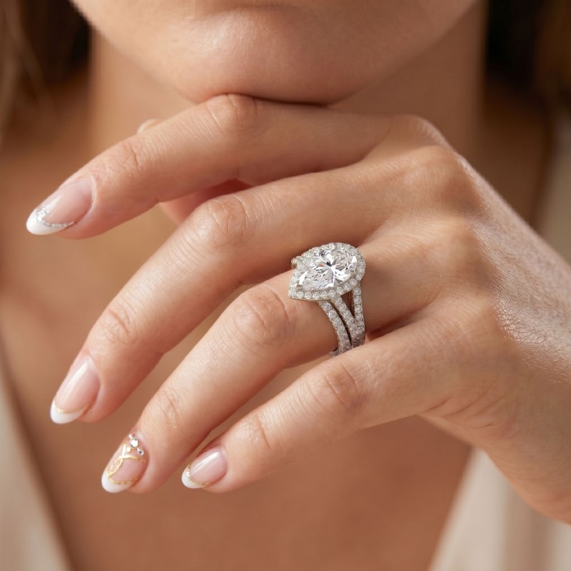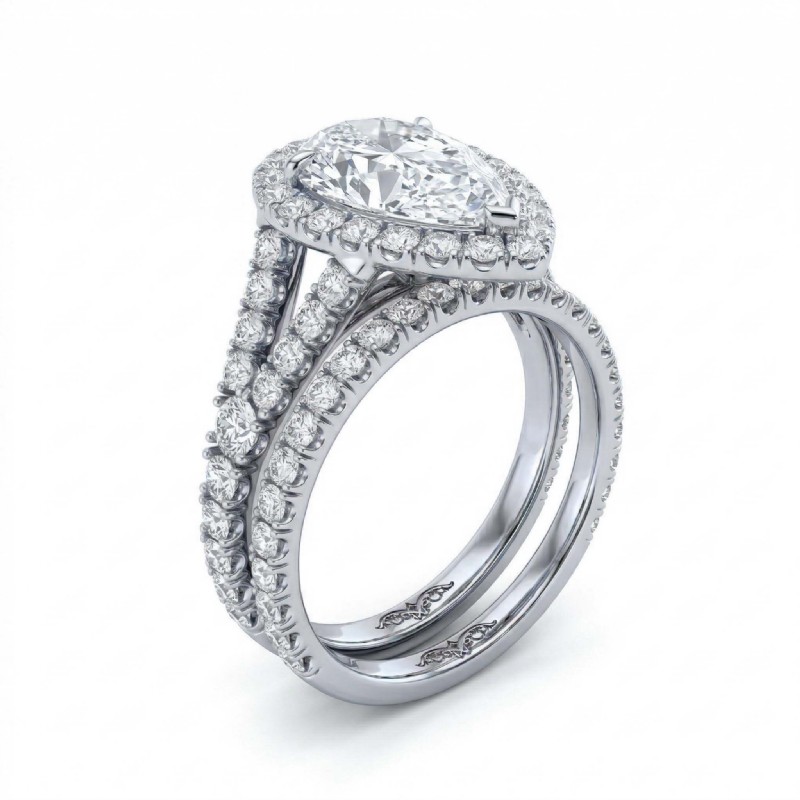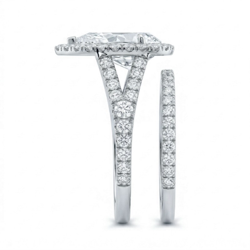 U Prong Diamond Engagement Ring Pear Semi Mount Bridal Set 14k White Gold 0.8Ct.