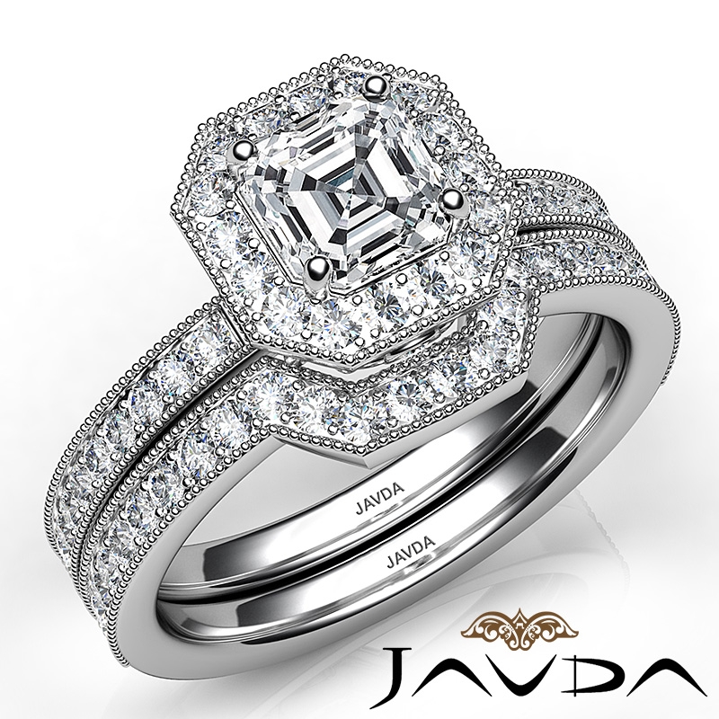 Milgrain Bezel Set Bridal style Engagement Ring, center is Asscher shape Diamond Report by IGI, D Color & VS1 clarity, Made in 14k White Gold (2.49 ct. tw.)