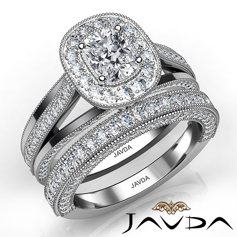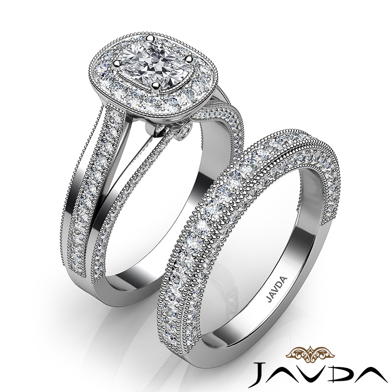 Pave Diamond Engagement Ring Bridal Sets 14k White Gold Cushion Semi Mount 1.7Ct.