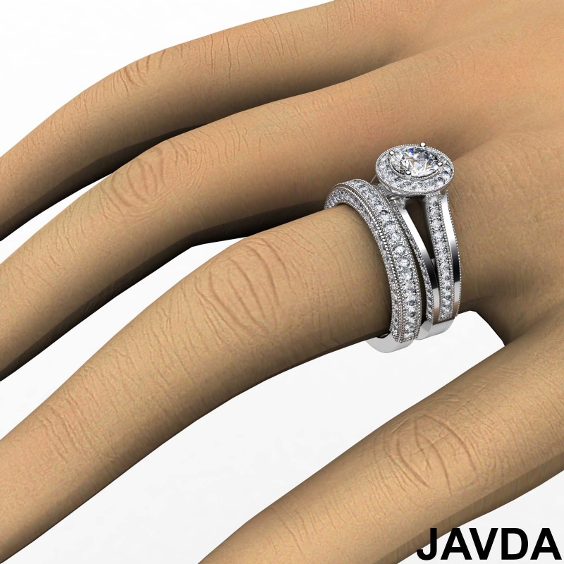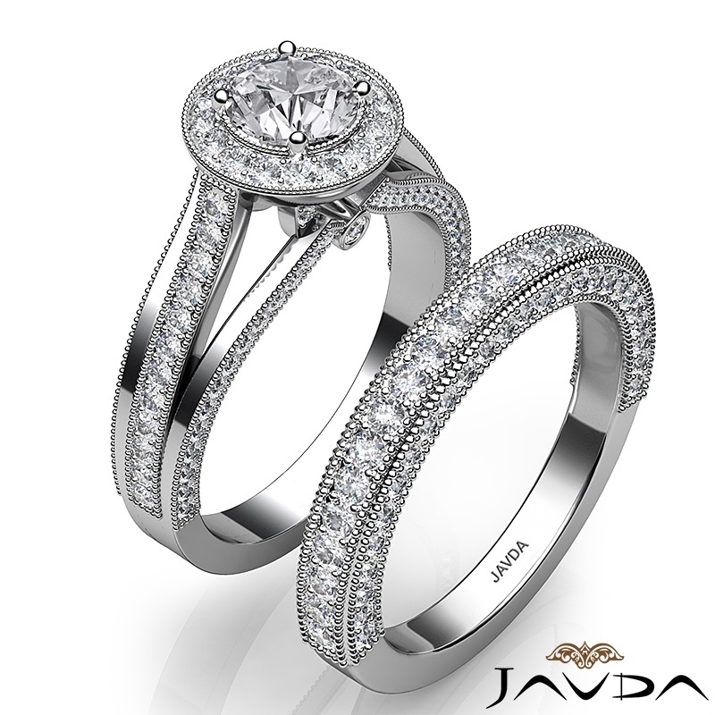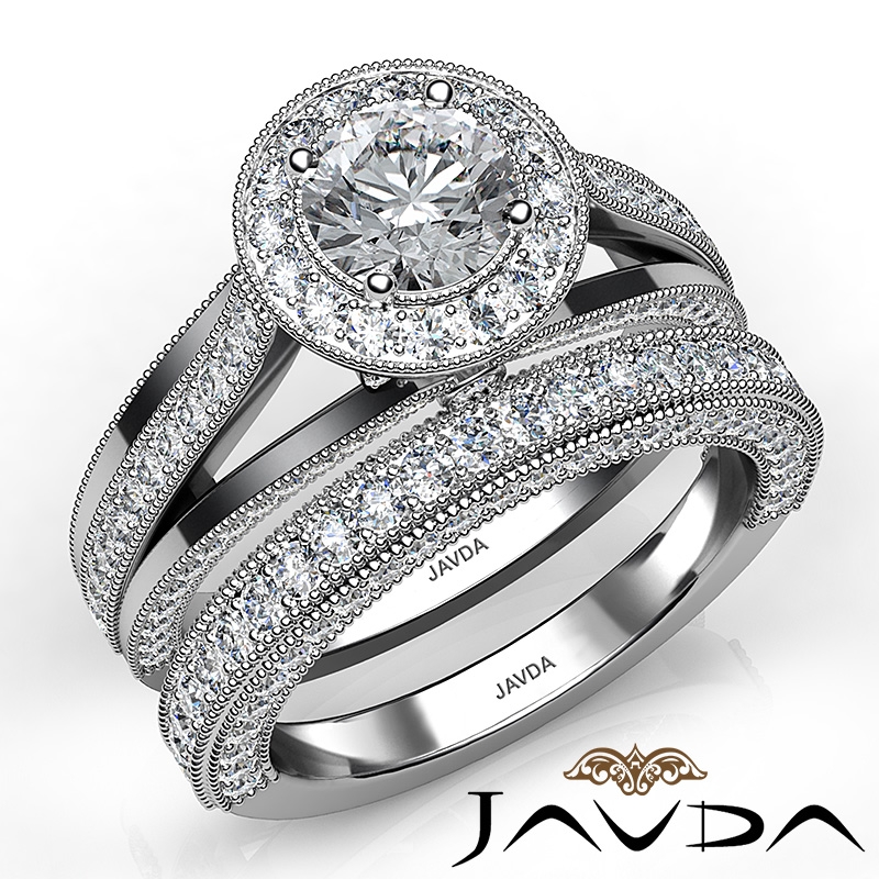 Pave Diamond Engagement Ring Round Semi Mount Bridal Sets 14k White Gold 1.7Ct.