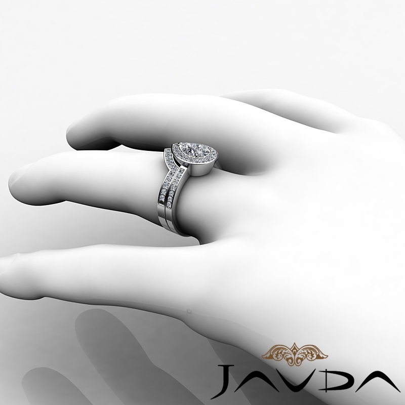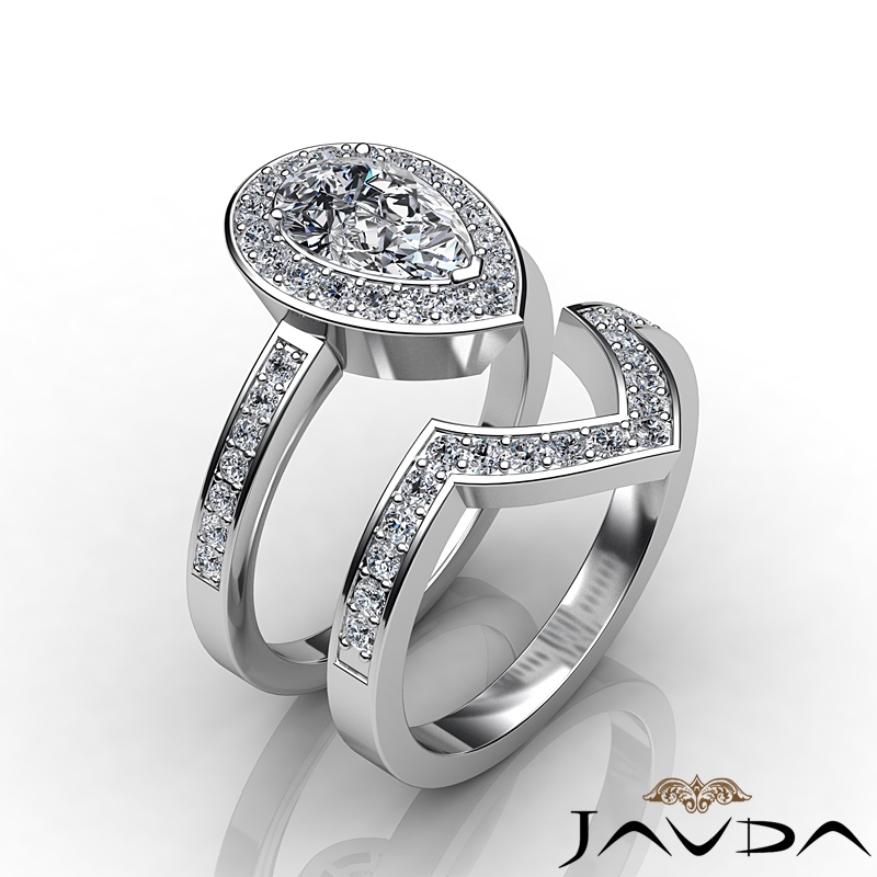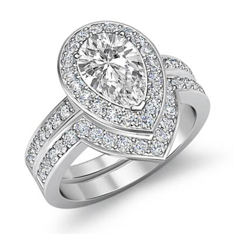 1.4Ct Diamond Halo Ring Pear Bridal Sets 14k White Gold Semi Mount.