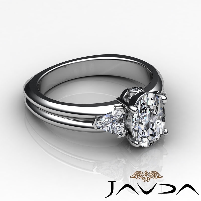 Diamond Engagement Three 3 Stone Trillion Oval Semi Mount Ring 14k White Gold 0.6Ct.