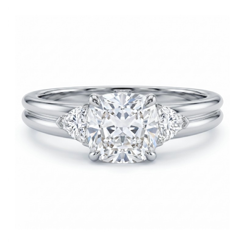 Diamond Engagement Three 3 Stone Trillion Cushion Setting Ring 14k White Gold 0.58Ct - javda.com