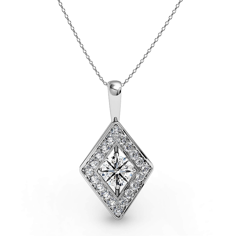 0.2Ct Kite Style Diamond Pendant Necklace In 14k White Gold 18 Inch Chain.