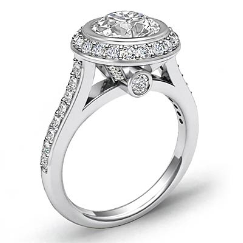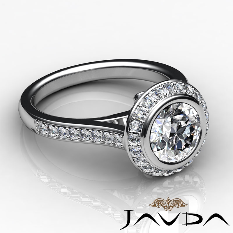 Bezel Set Halo Side Stone style Engagement Ring, center is Round shape Diamond Report by GIA, H Color & VS2 clarity, Made in 14k White Gold (1.52 ct. tw.)